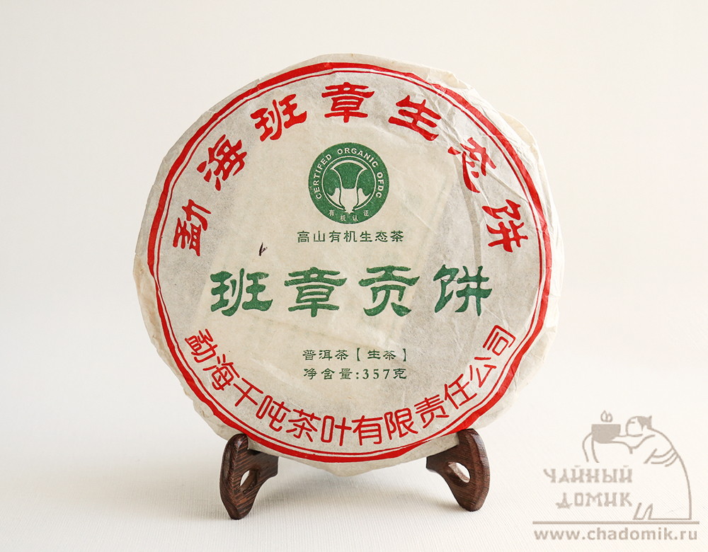 Органический шен пуэр из региона Бань Чжан, блин 357 г.